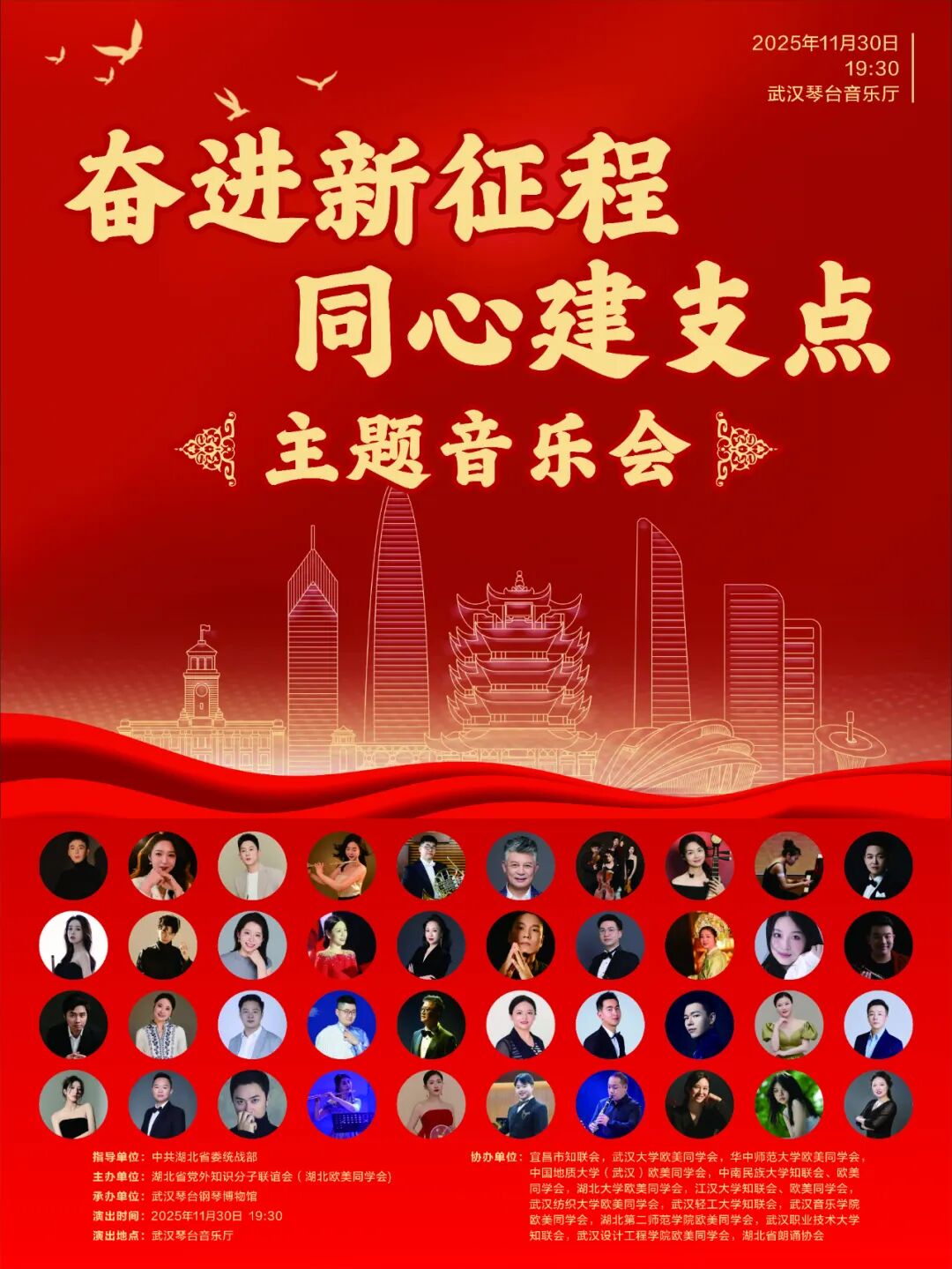 此次学校积极参与主题音乐会演出,不仅是扎实开展党外知识分子工作、凝聚师生力量的具体体现,更是学校主动融入湖北发展大局、践行使命担当的生动缩影。学校始终高度重视党外知识分子和青年学生的思想引领与价值塑造,通过各类平台为师生搭建展示才华、抒发情怀的舞台,引导广大师生将个人理想融入国家发展和湖北建设的宏伟事业中。参演师生表示,能够参与此次主题音乐会,用歌声传递心声、用旋律凝聚力量,感到无比荣幸。整场音乐会将艺术欣赏和政治引领深度融合,增进了统一战线成员的政治认同、思想认同、情感认同,汇聚“同心建支点”的强大合力。未来将以此次演出为契机,进一步发扬爱党报国传统,在各自的岗位上勇担使命、锐意进取,为学校发展和湖北“建成支点、走在前列、谱写新篇”贡献更多智慧和力量。