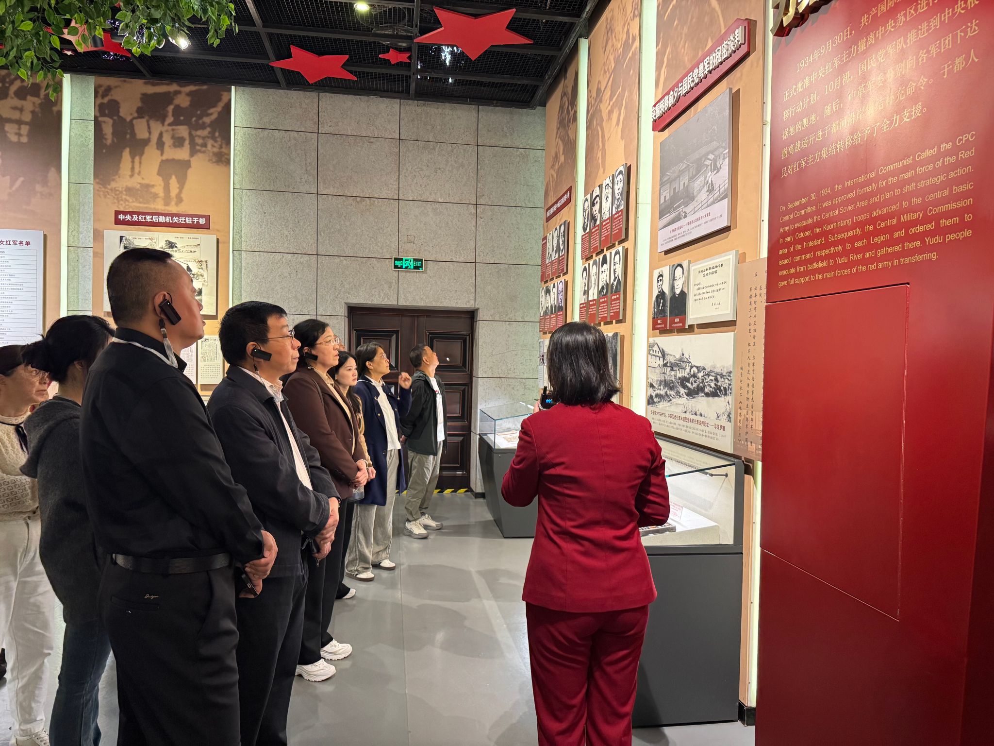 随后,一行人前往瑞金,先后参观了中央革命历史纪念馆、叶坪革命旧址群、二苏大景区和红井等红色教育基地。在中央革命历史纪念馆,系统了解了中央革命根据地从建立到发展壮大的光辉历程;漫步叶坪革命旧址群,在一砖一瓦间感受革命先辈们艰苦奋斗、运筹帷幄的革命情怀;在二苏大景区,重温中华苏维埃共和国的历史功绩,深刻认识到中国共产党早期治国理政的探索与实践;驻足红井旁,“吃水不忘挖井人,时刻想念毛主席” 的故事深入人心,让大家对中国共产党人的为民初心有了更直观的感悟。此次实践活动特别设置了 “重走长征路” 体验环节。大家在红军长征的起点沿着先辈们曾经走过的路前行,追寻先烈足迹,切身体验长征途中的艰难险阻,进一步坚定了理想信念,强化了纪律观念。
